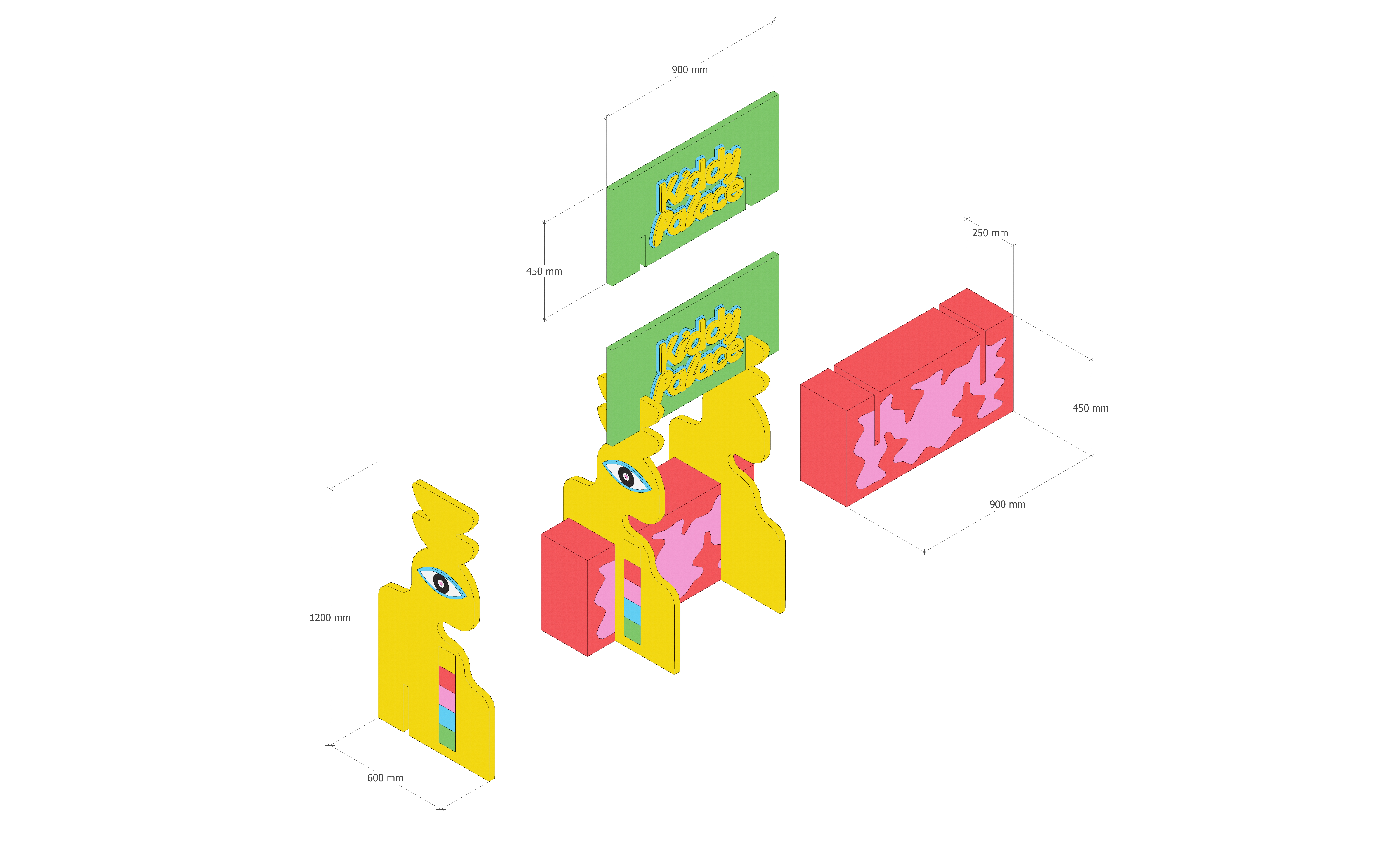 The rebrand embraces curiosity, adventure, and nostalgia, drawing from Kiddy Palace’s 90s legacy while appealing to modern families. Retaining the brand’s iconic blue and yellow palette, the system introduced additional vibrant hues and Memphis-inspired graphic elements, characterised by abstract forms, bold patterns, and playful distortion. Illustration was used to create a surreal, engaging visual language that encourages exploration and interaction.