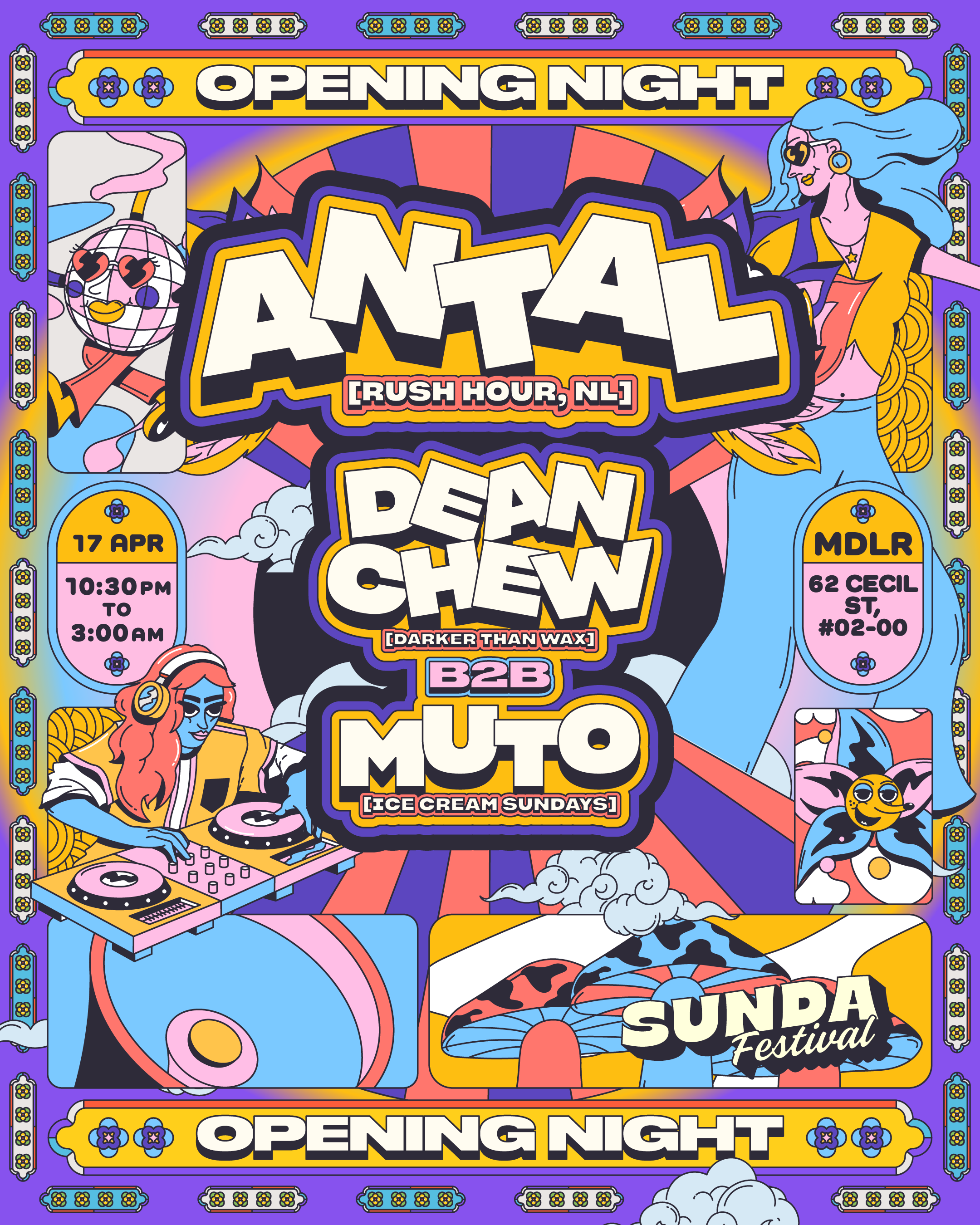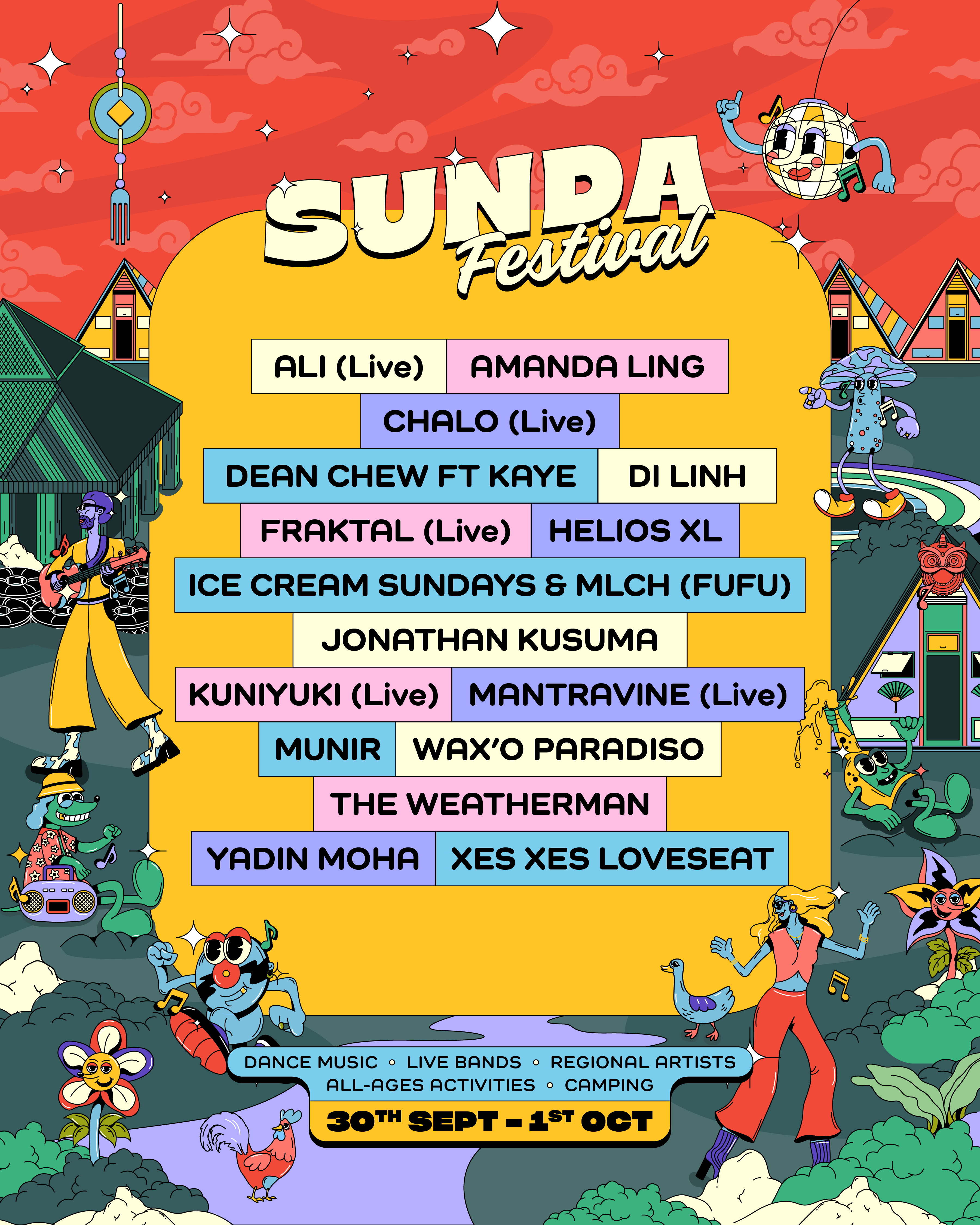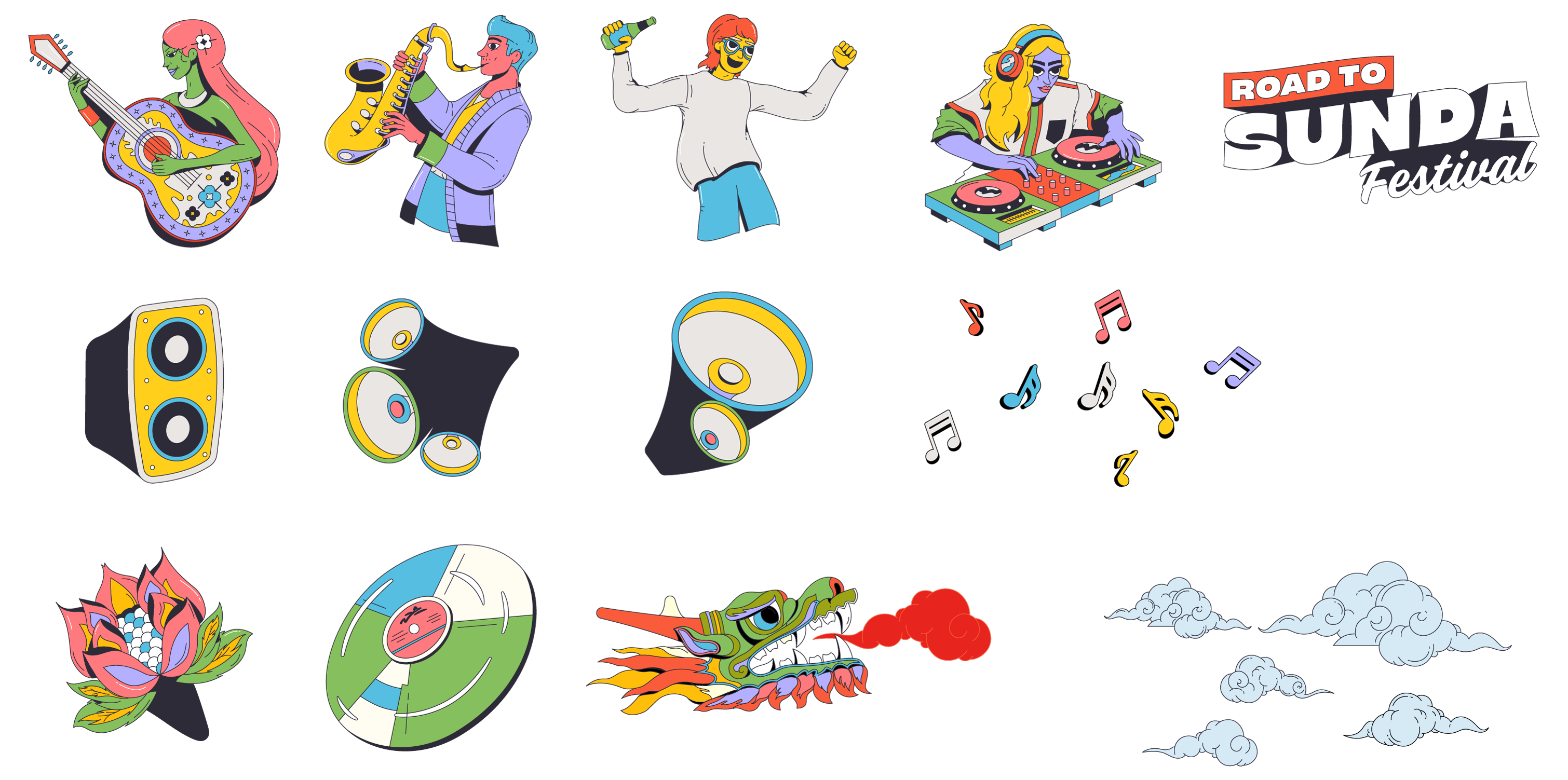 Led the visual identity and creative direction for Sunda Festival, Singapore’s first camping music festival. The project involved developing an illustration-led visual system built around original characters and animated key visuals, forming a distinct world designed to evolve across multiple editions.