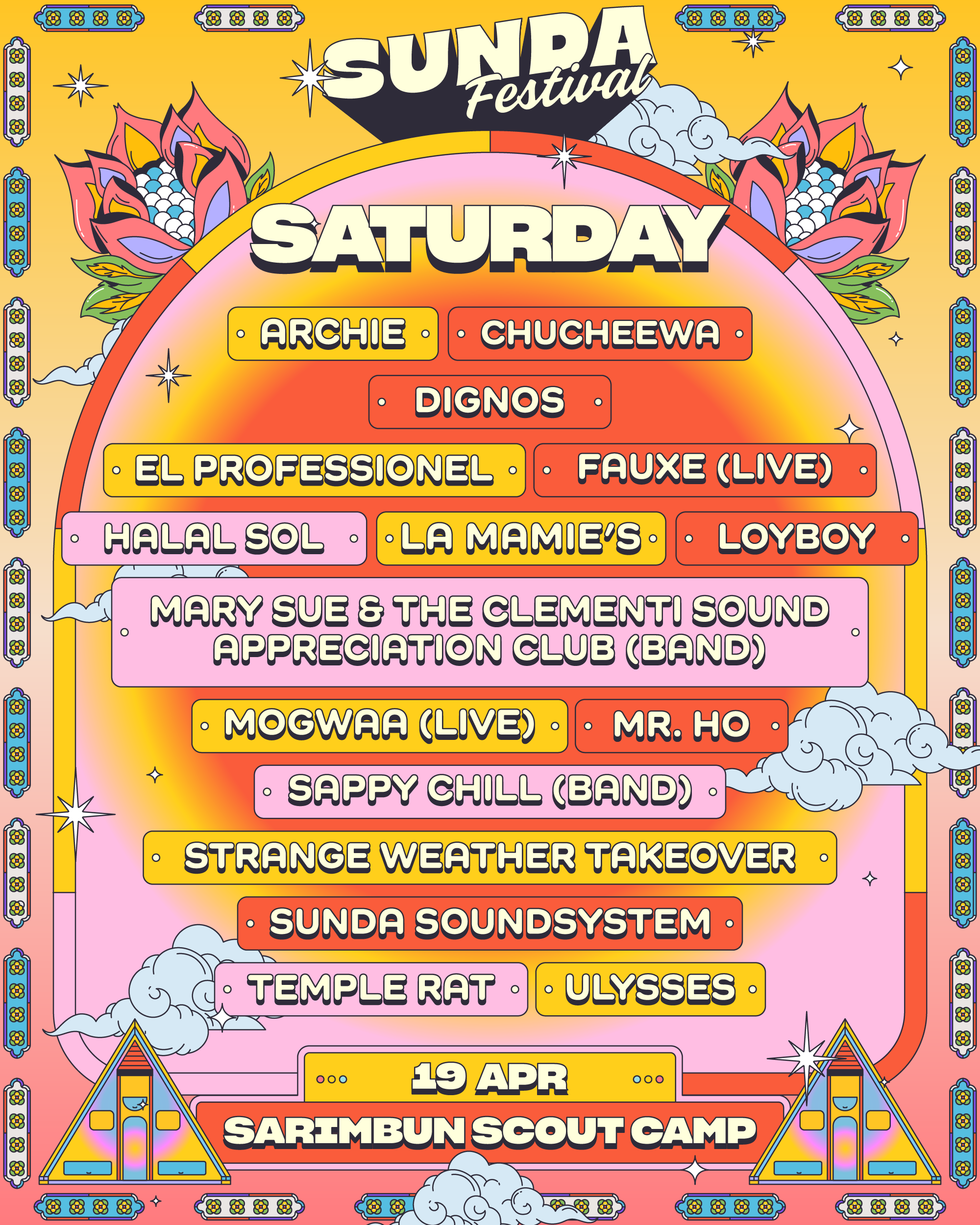 Rooted in playfulness, community, and a sense of escape, the visual direction balances bold graphic expression with clarity and adaptability, positioning Sunda as a long-term cultural platform rather than a one-off event.